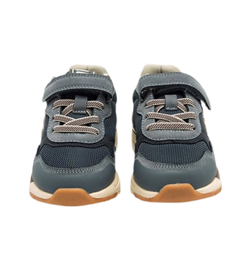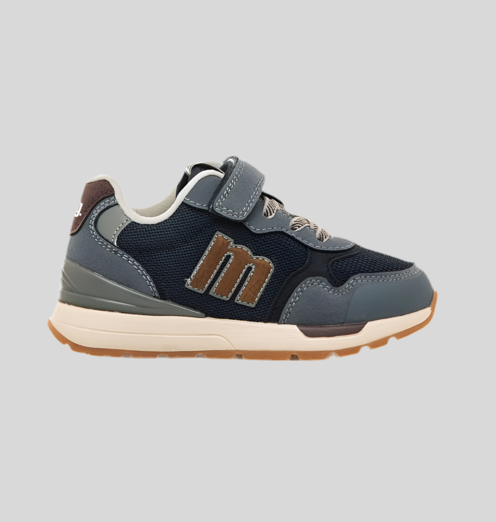 Seu design em mesh com reforços sintéticos proporciona durabilidade e respirabilidade, enquanto o solado de borracha bicolor oferece aderência e segurança a cada passo. O detalhe do logo lateral em marrom dá um toque de personalidade única.