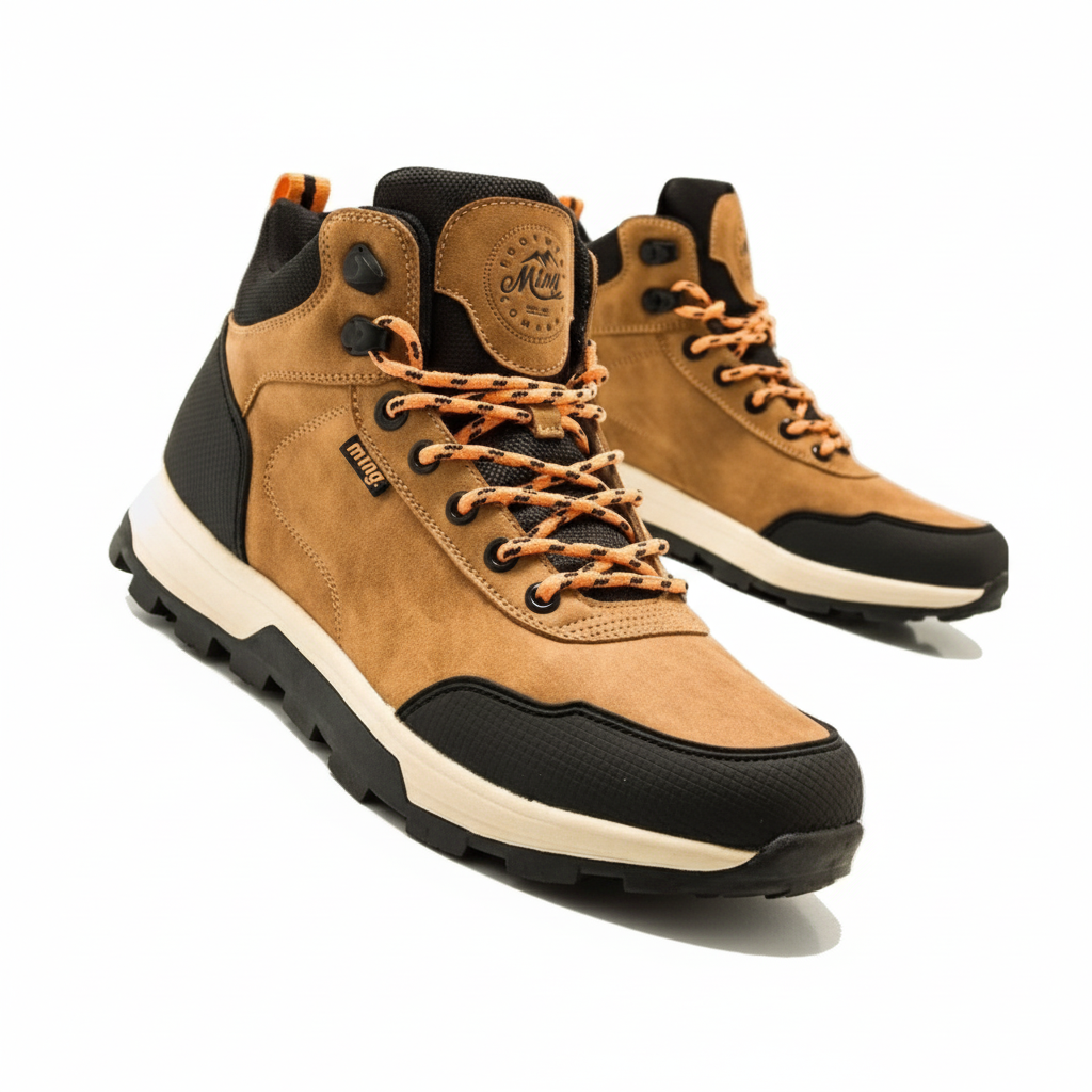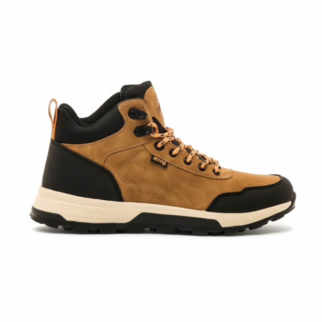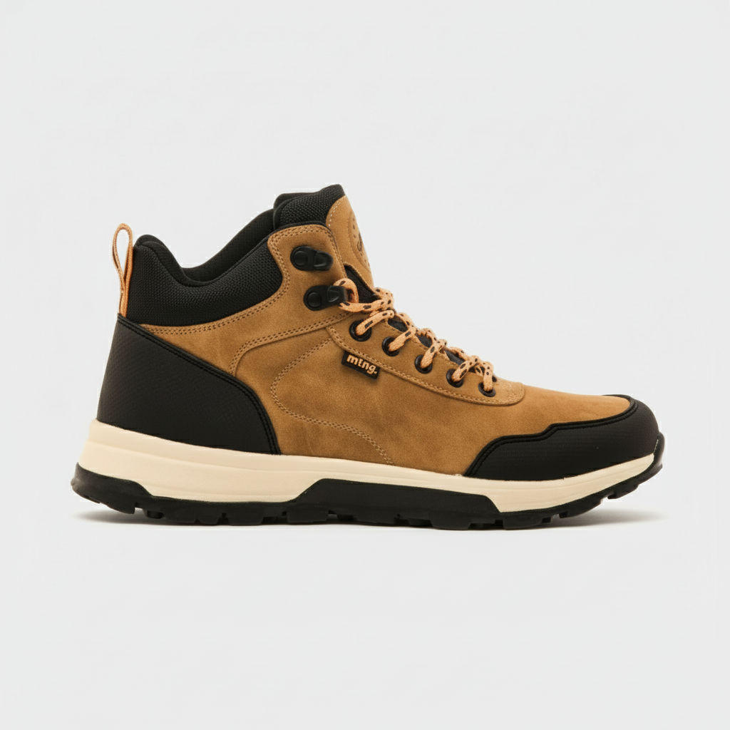 Bota MTNG com design esportivo urbano e estrutura mid-top. Incorpora painéis combinados com diferentes texturas para maior resistência e detalhe visual, bem como uma sola grossa que proporciona um passo confortável. A gola acolchoada mocha e a língua reforçada garantem um ajuste ideal, tornando-a uma escolha versátil para o uso diário.