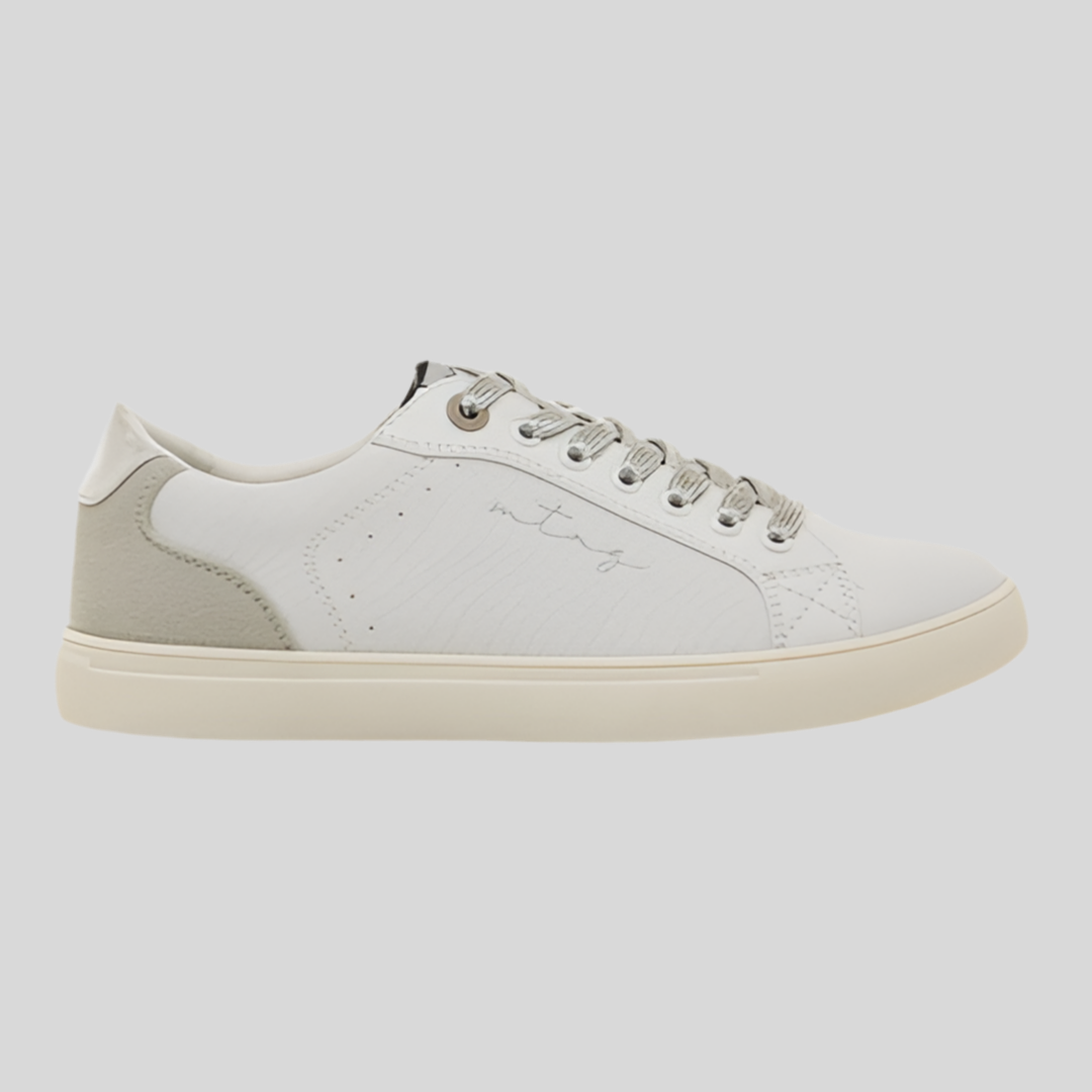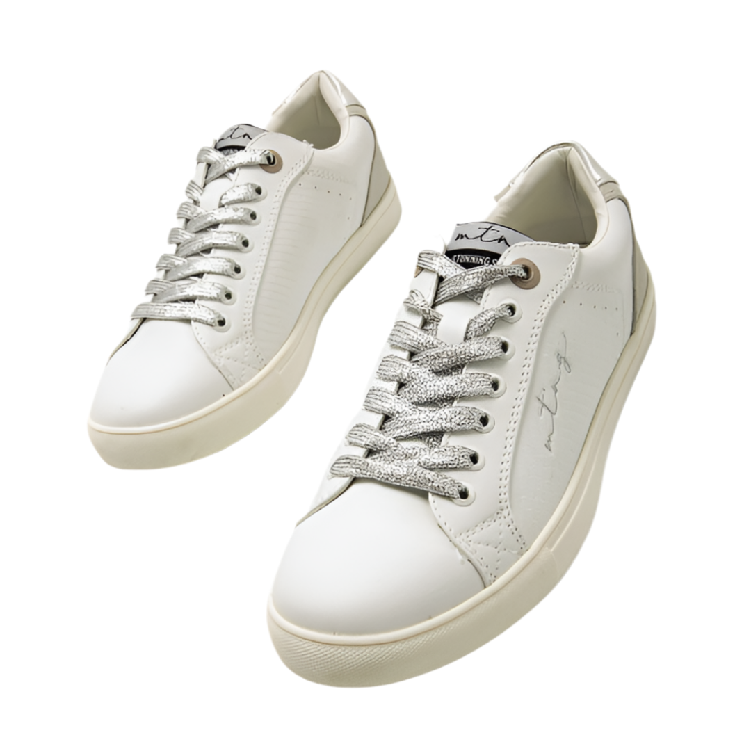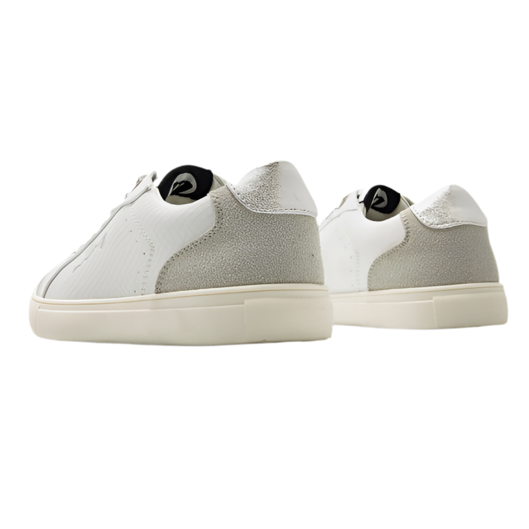 Com base branca e detalhes em cinzento claro e prateado, são perfeitos para quem procura um look casual, mas cheio de personalidade. A sola branca e os atacadores em bege criam um contraste subtil e sofisticado, enquanto o logótipo bordado na lateral adiciona aquele detalhe que faz a diferença.
