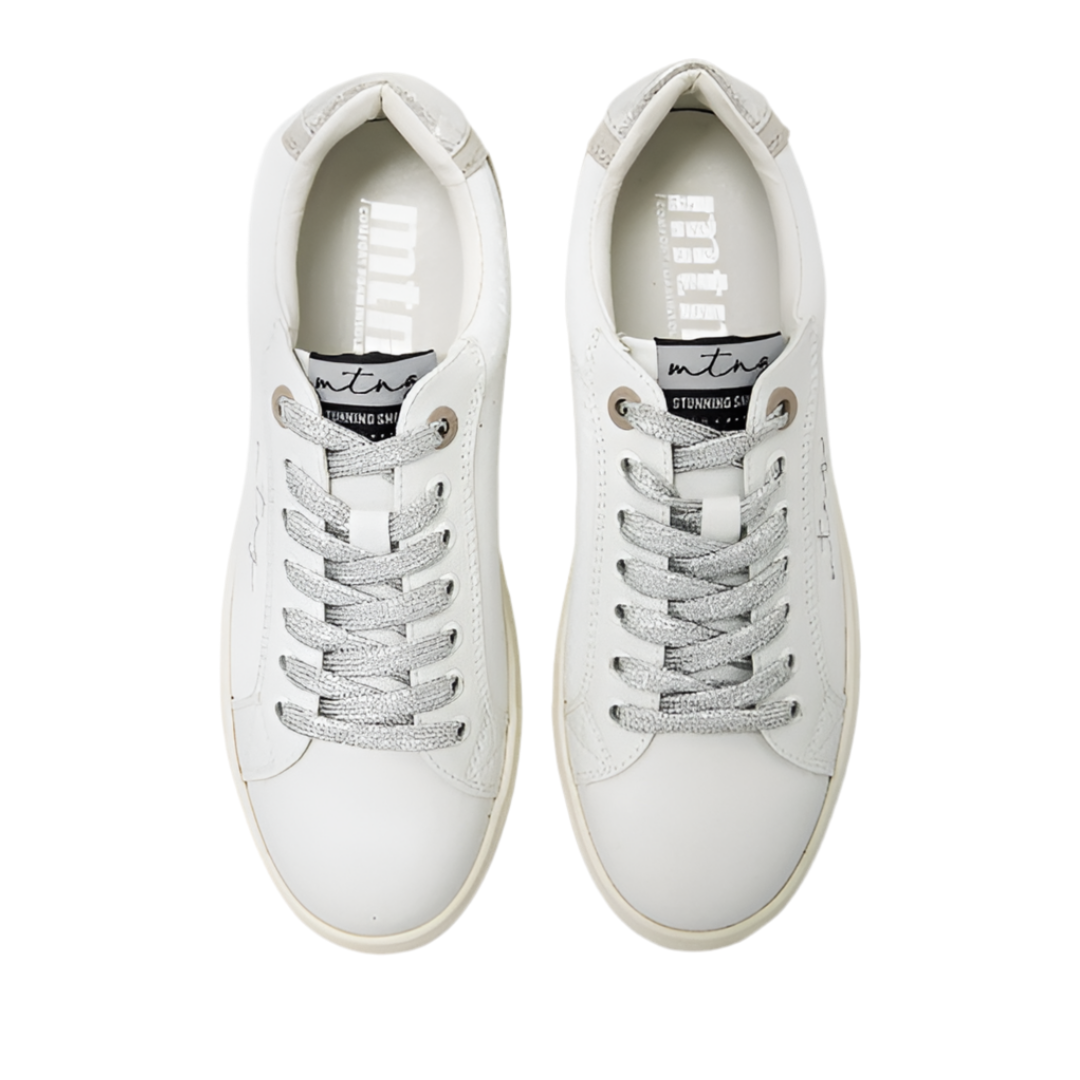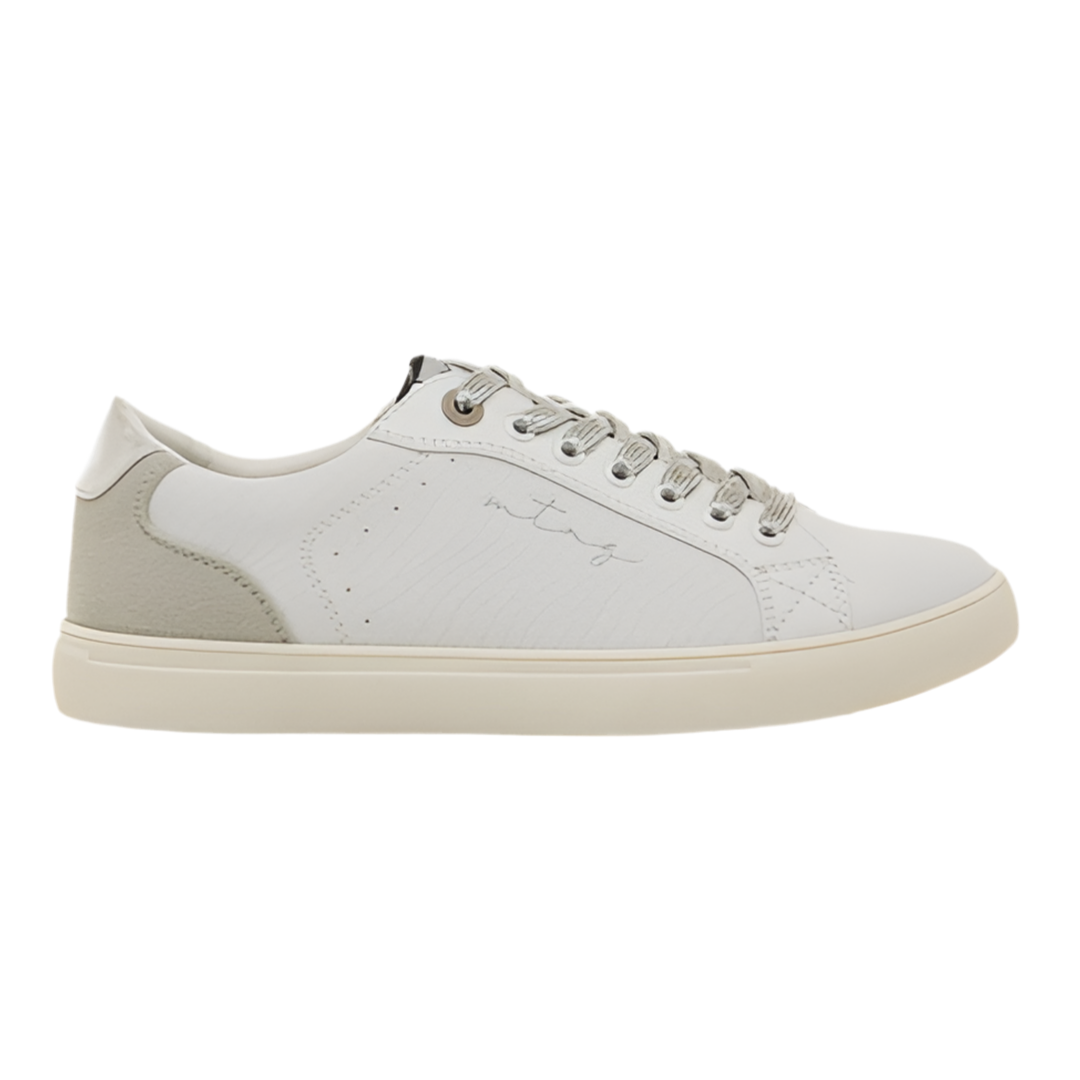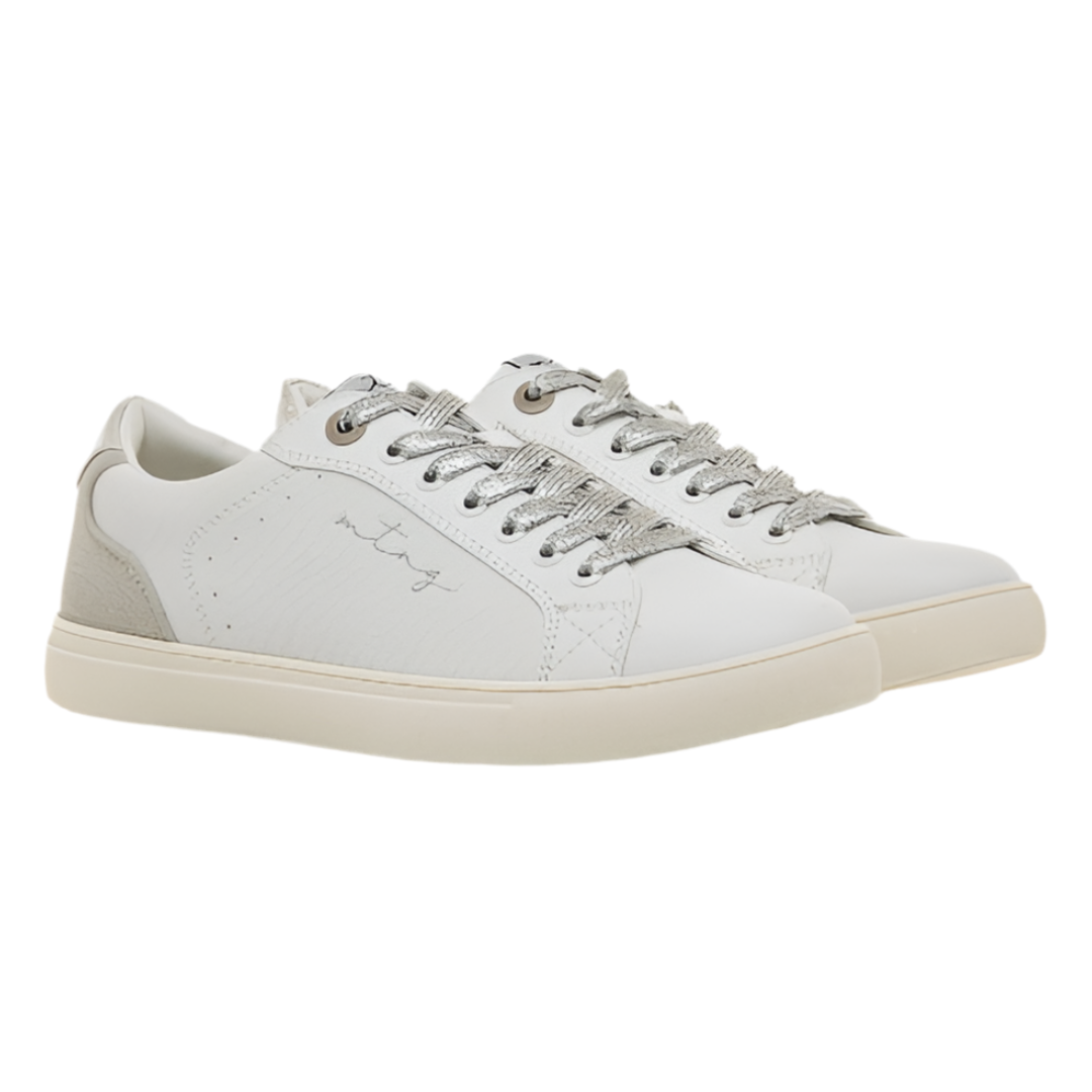 Com base branca e detalhes em cinzento claro e prateado, são perfeitos para quem procura um look casual, mas cheio de personalidade. A sola branca e os atacadores em bege criam um contraste subtil e sofisticado, enquanto o logótipo bordado na lateral adiciona aquele detalhe que faz a diferença.