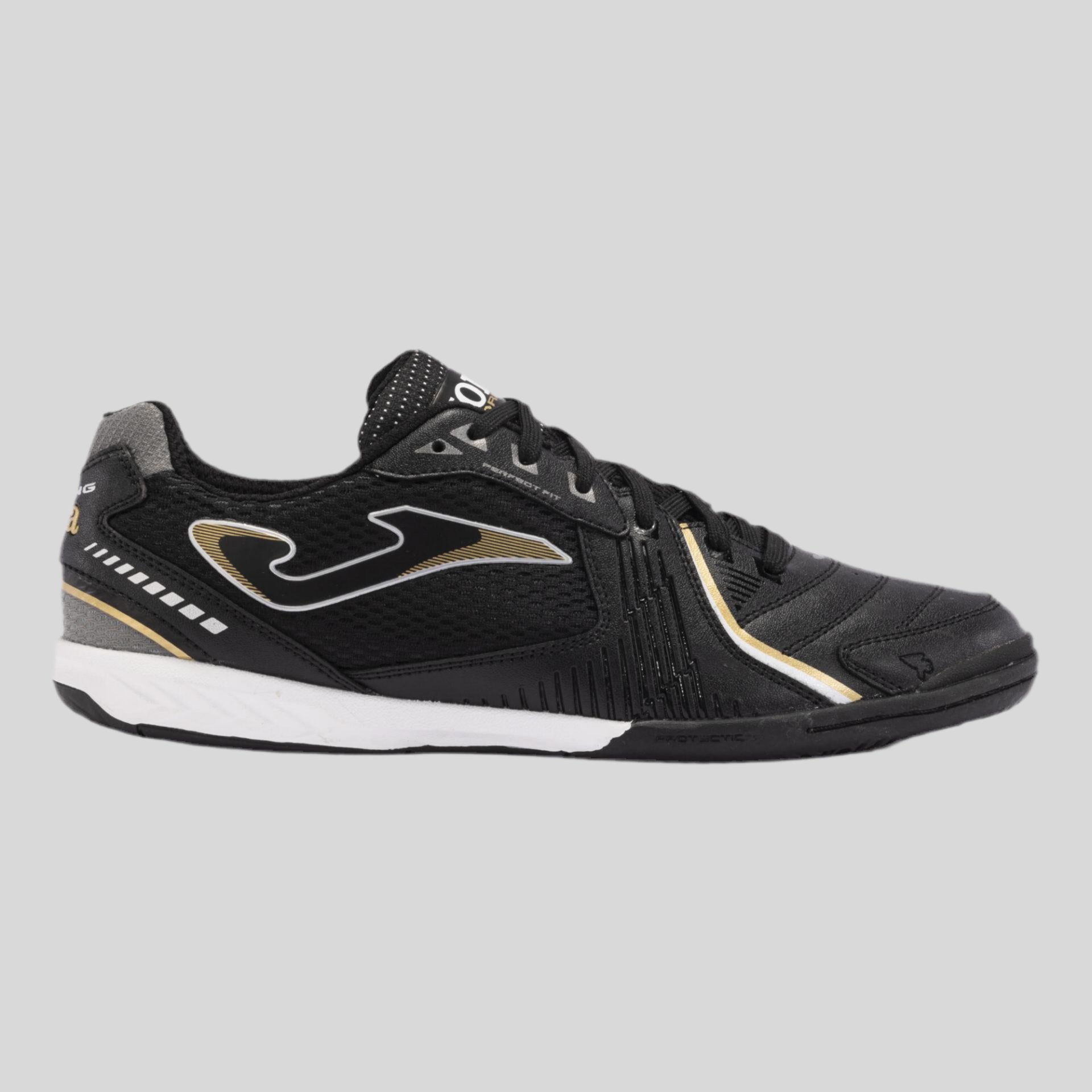 Modelo ideal para prática profissional. Parte superior em pele de alta qualidade com reforço frontal para um excelente toque e ajuste ao pé. Perfurações VTS e zonas têxteis garantem respirabilidade e leveza. Entressola em phylon para estabilidade, amortecimento e flexibilidade. Sola de borracha DURABILITY com linhas FLEXO para máxima aderência e liberdade de movimento em pisos interiores.